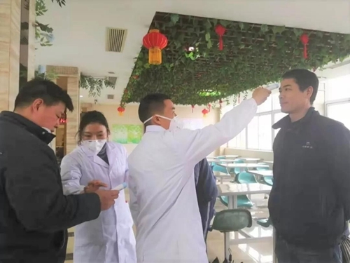 ▲对每位员工进行体温检测,并发放口罩,嘱咐正确佩戴及销毁
