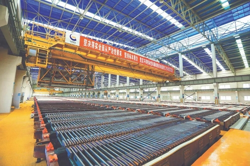 电解分厂自主改造溢流斗,年节省费用可达到106.4万元。图为电解分厂。