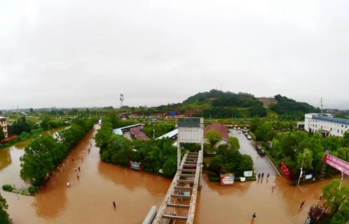 7月8日,湖北三鑫公司大门、广场和道路被洪水淹没,防汛形势十分严峻。