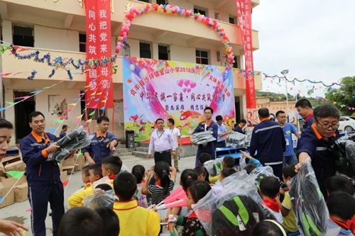 四方共创党支部组织锦丰公司党员为沙坪镇金山小学学生捐赠“六一”儿童节礼物。