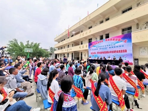 教育帮扶是锦丰公司帮扶贫困群众的重要措施之一。作为连接群众的“前沿阵地”,四方共创党支部始终高度重视贫困家庭的学生教育,不断增加在教育促进项目领域投入,并积极整合社会各界爱心资源和力量,在矿区组织开展各类教育扶贫项目或活动。目前,四方共创党支部在教育扶贫方面已经做到矿区贫困中小学生助养、高中生和大学生教育资助的全覆盖。