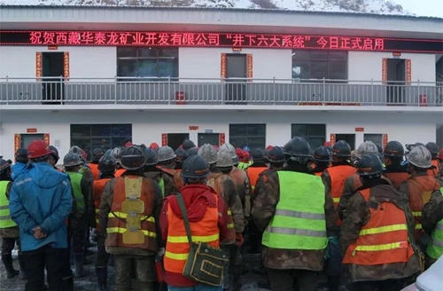 近日,西藏华泰龙矿业开发有限公司改造升级后的井下安全避险“六大系统”投入试运行。该系统除了对井下系统的升级完善外,还增加了井口的安检系统,安检系统包括虹膜身份识别、定位卡识别、酒精检测等。这标志着华泰龙公司信息化矿山建设又迈出了坚实一步。公司党委委员、总经理王平,副总经理孟铁牛,总经理助理杨桦,各部门负责人,施工单位100余人参加了启动运行仪式。