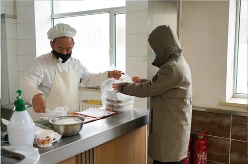 为确保到岗员工的饮食安全,研究院实行“零接触”配餐制。从食堂工作人员的测温消毒,到场所和原料的卫生保障,从制作环节的安全监督,到分餐、配送环节的全流程防控,他们严格落实卫生要求,精心搭配食材,,精挑细选一次性餐具,认真守时分批取餐,让员工吃上了健康卫生的“爱心便当”。