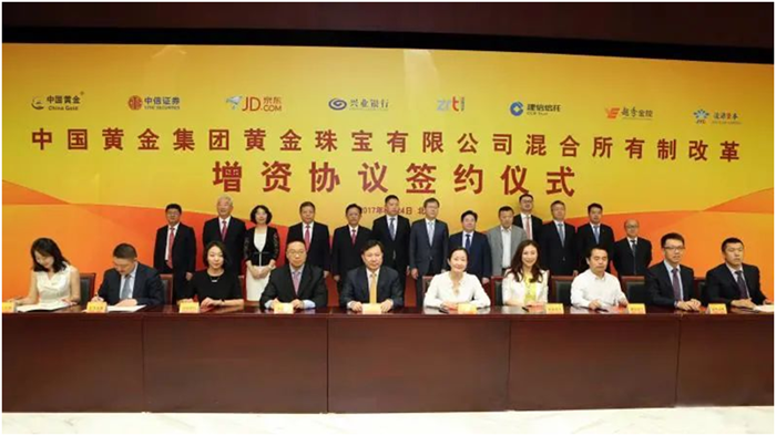 引入非公资本是中国黄金改革的主要举措。2017年,中国黄金引入了战投、产投,建立员工持股平台进行增资扩股。通过引入京东、中信证券等7家战略投资者和1家产业投资者,并且实施核心骨干员工持股计划,中国黄金融资22.5亿元。