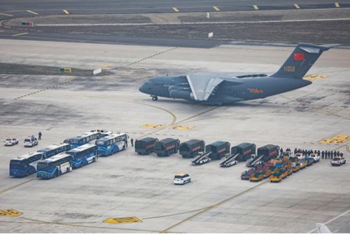 航空工业自主研发制造的200吨级大型多用途军用运输机运20首次参加非战争军事行动